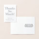 This minimal and plain silver foil thank-you greeting card design features the message "Thanks So Much!" on the front, along with a personalised message on the inside. It could be used to show appreciation to somebody who has attended a wedding, a funeral, a graduation, or some other event.