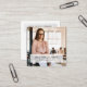The front of the business card features a full photo layout with a simple white framed nameplate that features the company name. The reverse side features the contact info and business name in a clean and minimal layout. You can customise the text size, font, colours, and background colour to suit your own personal preference.