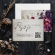 Enhance your wedding RSVP experience with our customisable elegant distressed gothic minimal QR Code RSVP card. Featuring a distressed background and modern typography with a bold purple and red watercolor floral on the back, this card allows your guests to respond to your event effortlessly while also viewing your wedding website for more details. Be sure to view the design collection for all of your wedding stationary needs.