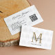 Minimal QR Code White Anahaw Leaf Script Monogram Business Card