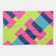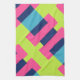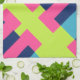 Vibrant blocks of colour intersect and overlay one another, creating a complex geometric composition. Bold shades of blue, pink, and green dominate the design, shapes interfacing with each other.