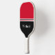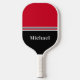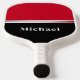 This pickleball paddle is simple, modern, minimal but bold and colourful with its red and black stripes and your name.