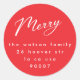 Minimal Red Doodle Modern Custom Merry Christmas Envelope Classic Round Sticker