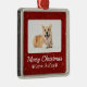 Minimal Red Glitter Pet Photo Merry Christmas Metal Tree Decoration