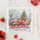Minimal red truck Christmas scene rustic napkins