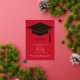 Minimal Red & White Gold Cap Grad Announcement