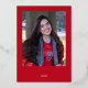 Elegant and understated, this graduation announcement is modern and simple, but sophisticated, with its plain red background and creamy white text. The graduation cap and year are real gold foil. Your favourite photo of the grad completes the back. Announce your achievement with class and elegance. Created by Simply Farmhouse Press.