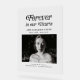 Honour your loved one with this minimal black and white retro funeral sign featuring the heartfelt phrase “Forever in our Hearts.” Designed with a clean, modern layout, this memorial sign offers a timeless way to welcome guests and create a comforting atmosphere at a funeral, memorial service, or celebration of life. Its simple yet elegant design makes it easy to coordinate with any décor, while serving as a beautiful tribute to your loved one’s memory.