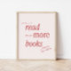 Minimal Retro Typography Book Lover Poster Print. Design a bedroom or living space with this simple, retro themed 'read more books' wall art print, perfect for book lovers.