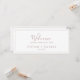 This minimal rose gold hanging seating chart welcome header is perfect for a simple wedding. The modern romantic design features classic rose gold and white typography paired with a rustic yet elegant calligraphy with vintage hand lettered style. Customisable in any colour. Keep the design simple and elegant, as is, or personalise it by adding your own graphics and artwork. The card prints on the front and back (double-sided). Please check the collection for the coordinating table number seating chart cards.