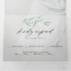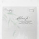 Minimal Sage Eucalyptus Grey Watercolor Tri-Fold Wedding Invitation features Pale sage green eucalyptus leaves paired with a modern abstract watercolor brush stroke background in ultimate grey and white - all in one wedding invitations with pre-addressed detachable meal choice rsvp for your guests to easily mail back