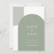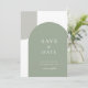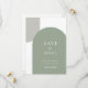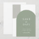 Set the tone for your wedding with this minimalist save the date card, featuring two arches. A basic sage green arch and a simple grey arch in the corner. The clean, retro layout offers a modern take on elegant bohemian style, making it ideal for couples planning an outdoor celebration, courtyard wedding, or intimate gathering.