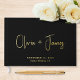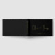 This minimal and elegant black wedding guest book features your choice of real gold, silver or rose gold foil, your names in a chic modern script, and your wedding date and location in classic serif typography. You can personalise the title on the spine.