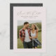 Simple, minimal and elegant, this one-photo vertical save the date is the perfect way to announce your engagement and upcoming wedding to friends and family. The script "save the date" sits above your custom type with plenty of room for names, wedding date, event location and any other info you'd like to share like a website on a soft blush pink background. The back is a matching charcoal grey with a white dash pattern.