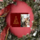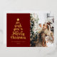 Minimal Script One Photo Horizontal Red Merry Christmas Foil Holiday Card