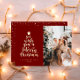 Minimal Script Burgundy Red Merry Christmas Foil Holiday Card