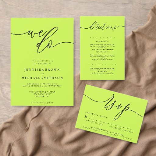 Minimal Script Cyber Lime Jet Black Wedding