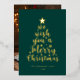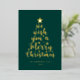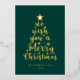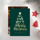 Minimal Script Deep Green Merry Christmas Foil Holiday Card