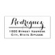 Minimal return address design features your last name in modern calligraphy script writing and return address in a classic block font style. Includes a simple horizontal divider line.