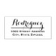 Minimal return address design features your last name in modern calligraphy script writing and return address in a classic block font style. Includes a simple horizontal divider line.