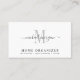 Minimal script monogram home organizer business card featuring a large classic serif initial layered behind an elegant handwritten name. Clean typography and generous white space create a polished, trustworthy look ideal for professionals specializing in decluttering, organizing, and home setup services. Designed for experts who help transform busy spaces into calm, functional environments, this timeless neutral layout keeps the focus on your name and brand while communicating clarity, structure, and professionalism.