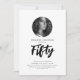 An elegant "50th Birthday" party invitation design with personalised photo, modern typography and custom text.