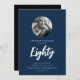 Minimal Script Photo 80th Birthday Party Navy Invitation