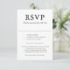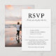 Presenting our minimalist wedding RSVP card, a blend of understated charm and elegant functionality. The card captures attention with its bold, clean serif font, spelling out 'RSVP' with a commanding presence. Below, the due date is artfully written in an elegant script, adding a touch of grace and sophistication. The back of the card offers a delightful surprise – a space for your chosen photo, making each response card a memorable keepsake of your special day. This card not only simplifies the response process for your guests but also carries the essence of your love story, beautifully encapsulated in a modern, minimalist design.