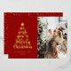 Minimal Script One Photo Horizontal Red Gold Real Foil Merry Christmas Foil Holiday Card