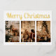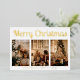 Minimal Script Three Photo Merry Christmas Foil Holiday Card