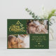 Minimal Script Two Photo Green Merry Christmas Holiday Card