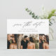 A romantic, simple photo save the date card featuring beautiful script calligraphy, 3 photos and minimal text on the front. The back includes the wedding website for more information. Click the edit button to customise this design.
