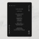 This minimal black menu card in rounded shape features your dinner menu or wedding menu in modern typography on a solid black background. Perfect for a modern wedding or any other elegant and simple-chic event. All colours of this wedding menu card - background and text - can be changed in the design tool.