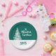 Minimal Snowy Tree Teal and White Holiday Party Paper Plate