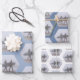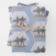 Minimal Surfer Couple Dusty Blue Wrapping Paper Sheets. Surfing couple entering the ocean in a hexagon pattern, with the pattern in three graduated sizes. Perfect for occasions and holidays.