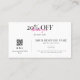 A minimal and elegant small business thank you discount card featuring a clean white layout with soft blush pink script, QR code, social media details, branding space, and a coupon code section. Perfect for packaging inserts, order thank you cards, and customer appreciation. This editable design helps encourage repeat purchases, strengthen customer loyalty, and create a polished branded unboxing experience.