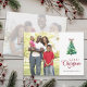 This Christmas card features a simple minimalist design accented with a graphic of a holiday tree adorned with a red and green bow at the top. Personalise this card with your favourite family photos and add a personal message on the back.