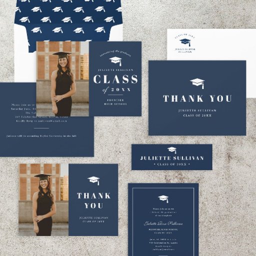 Minimal Type Photo Graduation Party Can coolers featuring large graduation year, classic type and student name. Click the edit button to customize this design.