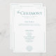 Sleek, sophisticated, and effortlessly elegant — this modern wedding program ceremony card is perfect for the couple who loves timeless design with a contemporary twist. Featuring soft turquoise aqua text on a clean white background, the layout is framed by a thin openwork border that adds just the right touch of detail. The couple's first names take centre stage, drawing the eye before guiding guests to the event details in a minimalist modern font. A simple line art seashell adds a touch of coastal charm. Created by Simply Farmhouse Press.
