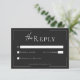 Sleek, sophisticated, and effortlessly elegant — this modern wedding response card without dinner choices is perfect for the couple who loves timeless design with a contemporary twist. Featuring crisp white text on a clean charcoal black background, the layout is framed by a thin openwork border that adds just the right touch of detail. The event details are showcased in a minimalist modern font. Created by Simply Farmhouse Press.