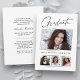 Clean, minimal, modern and elegant "4 photo" graduation announcement cards, featuring design elements of modern text with a unique calligraphy ink script. The graduate's photos are accented with a delicate & minimalist gradient boarder. The back of the card offers personalised text spaces for information about your graduation or can be cleared if you wish to hand write a message. Black & White or easily customise the background to match your school's primary colour or any colour of your choice. Perfect for the high school, college and university grad student seniors.