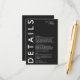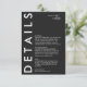 Keep your wedding stationery elegant and simple with this Minimal Wedding Details Invitation. Featuring a clean, modern layout with timeless typography, this card is perfect for sharing all the important information about your big day. Its minimalist design ensures your details remain the focus while complementing any wedding style. Ideal for couples who appreciate understated elegance and contemporary aesthetics.