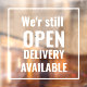 Minimal We're Still Open Transparent Window Cling