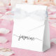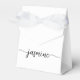 Girly Feminine Simple Minimalist Clean White Monogram Name Signature Script Custom Personalised Favour Box. This design featuring your first name in a pretty hand lettered style swash tail font signature typography (or calligraphy) in black on white background. These girly feminine gift boxes great for handing out, gifts, guest gifts and treats during an upcoming birthday party, baby shower, BBQ, wedding reception, bachelorette party, sweet 16 birthday, bridal shower, anniversary and more.