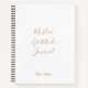 Islamic Thankful Gratitude Self Care Journal. Minimal white ivory colour spiral notebook and a gold calligraphy script font written on the hardcover of the book. Muslim men and women can express their daily gratitude, reflection and be mindful and be grateful to be blessed by writing inside this diary planner. Simple. Modern. Choose the paper design inside the book. You can personalise this product template by editing the name mentioned below. Contact designer for any product change. HerLineForDesignStudio.