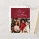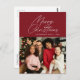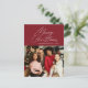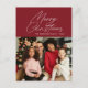 A modern minimal red photo christmas card design with white stylish lettering. Feel free to personalise the holiday image photo and text.