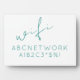 Modern WiFi password sign to share your network information with guests. Perfect for beach houses, Airbnb rentals, bed and breakfast rooms and more. Minimal modern design in turquoise and white with elegant script and simple, easy-to-read typography.