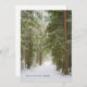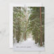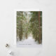 A quiet winter scene with a soft snow-covered path leading into the trees.