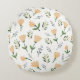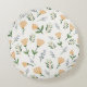 Add comfort and Scandinavian charm to your home with this round pillow, featuring pale yellow florals and clean green leaves in a simple, elegant design.