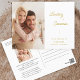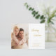This save the date postcard features a modern minimalist design and is accented with simple gold script text. The postcard offers 2 photos, one on the front and a second on the back. Custom text on the back allows you to add more wedding details.